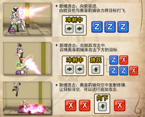 投枪袭击:主动技能,魔力消耗30,冷却时间6秒,只有在跳跃状态下才能使用,非常使用打连击。在空中召唤纳斯德刀刃,对下面的敌人以物理攻击200%攻击,着陆的同时用魔法伤害的200%攻击对方。